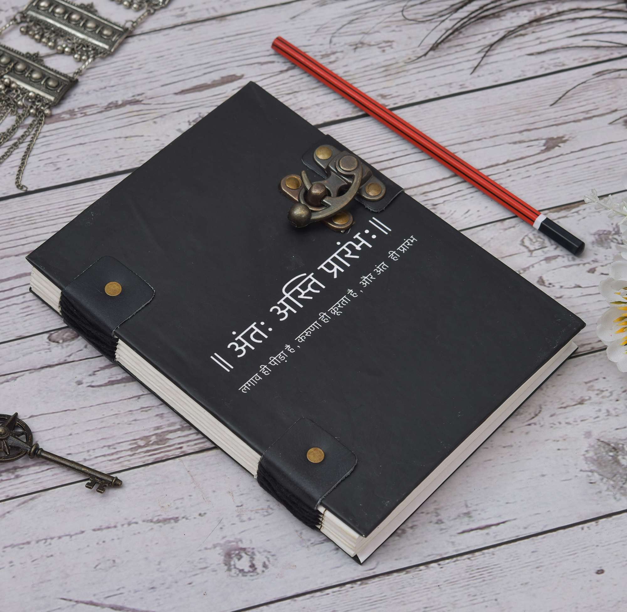 vintage handmade leather journal. Crafted with genuine leather, it radiates authenticity and charm, perfect for those who appreciate classic craftsmanship. The premium antique lock closure adds a touch of elegance and security, ensuring your thoughts and memories are safeguarded within its pages. Inside, you’ll discover 200 White handmade pages, providing ample space for your musings, sketches, and stories to unfold. Whether it’s for journaling, sketching, or planning, this versatile journal is a timeless companion for your creative endeavors. Treat yourself or a loved one to this exquisite piece, a celebration of tradition and creativity